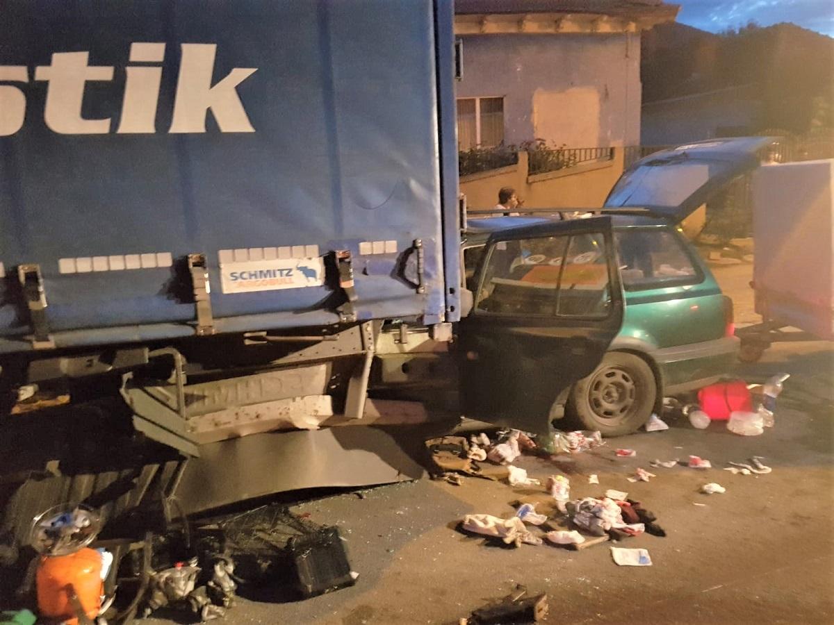 Maşină zdrobită sub TIR la Filiaşi, după ce şoferul ar fi adormit la volan. Doi adolescenţi au ajuns la spital (Video) | Imaginea 2 din 2 | Galerie Foto