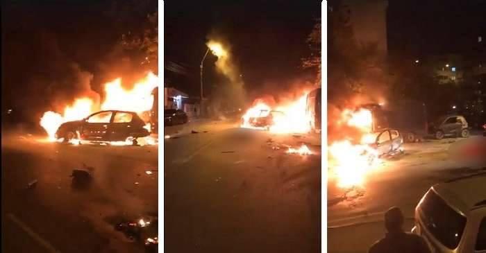 Accident grav în București: cinci mașini în flăcări, după un impact violent. O tânără a murit, alte 5 persoane au fost rănite