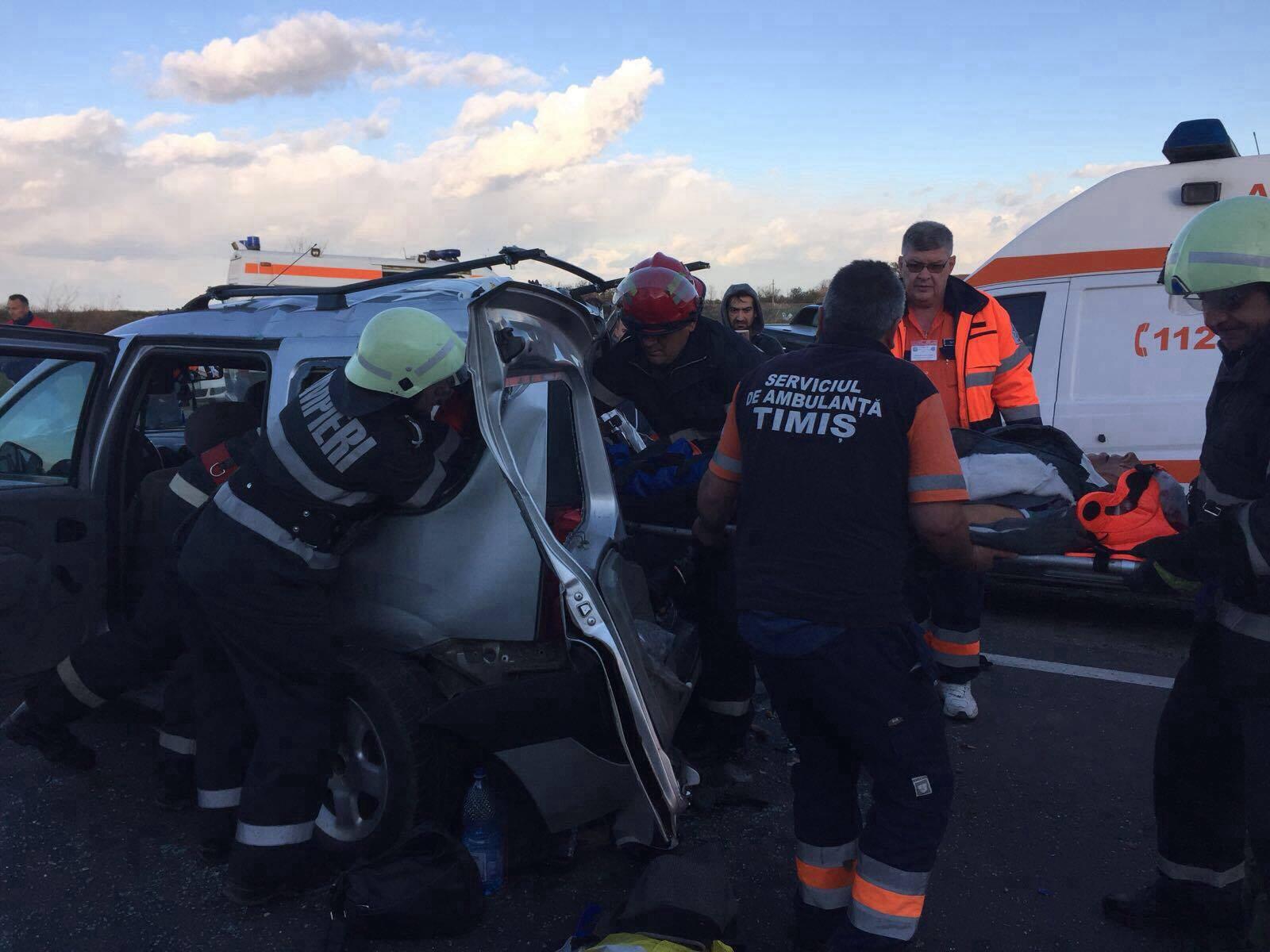 ACCIDENT GRAV în urmă cu puțin timp, în Timiș. O maşină a fost făcută praf după ce S-A IZBIT violent de un microbuz care transporta 50 de muncitori. Sunt victime!