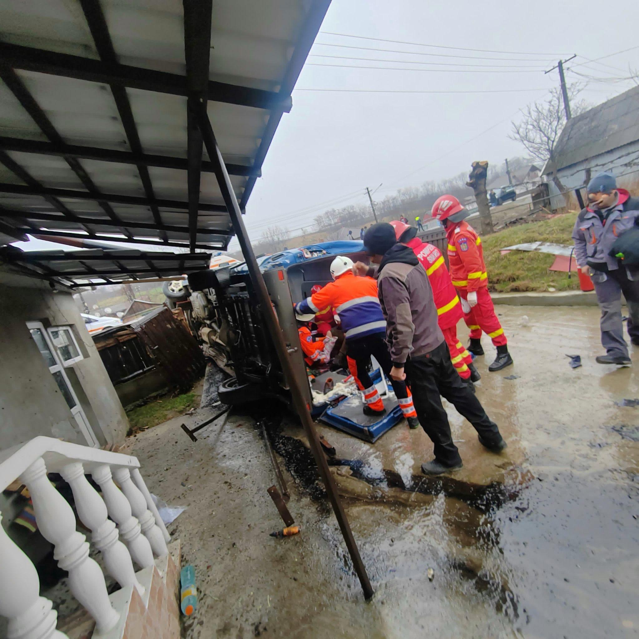 Accident grav într-un sat din Suceava. O autoutilitară cu şase persoane s-a răsturnat într-o curte. Trei oameni, blocaţi între fiarele maşinii