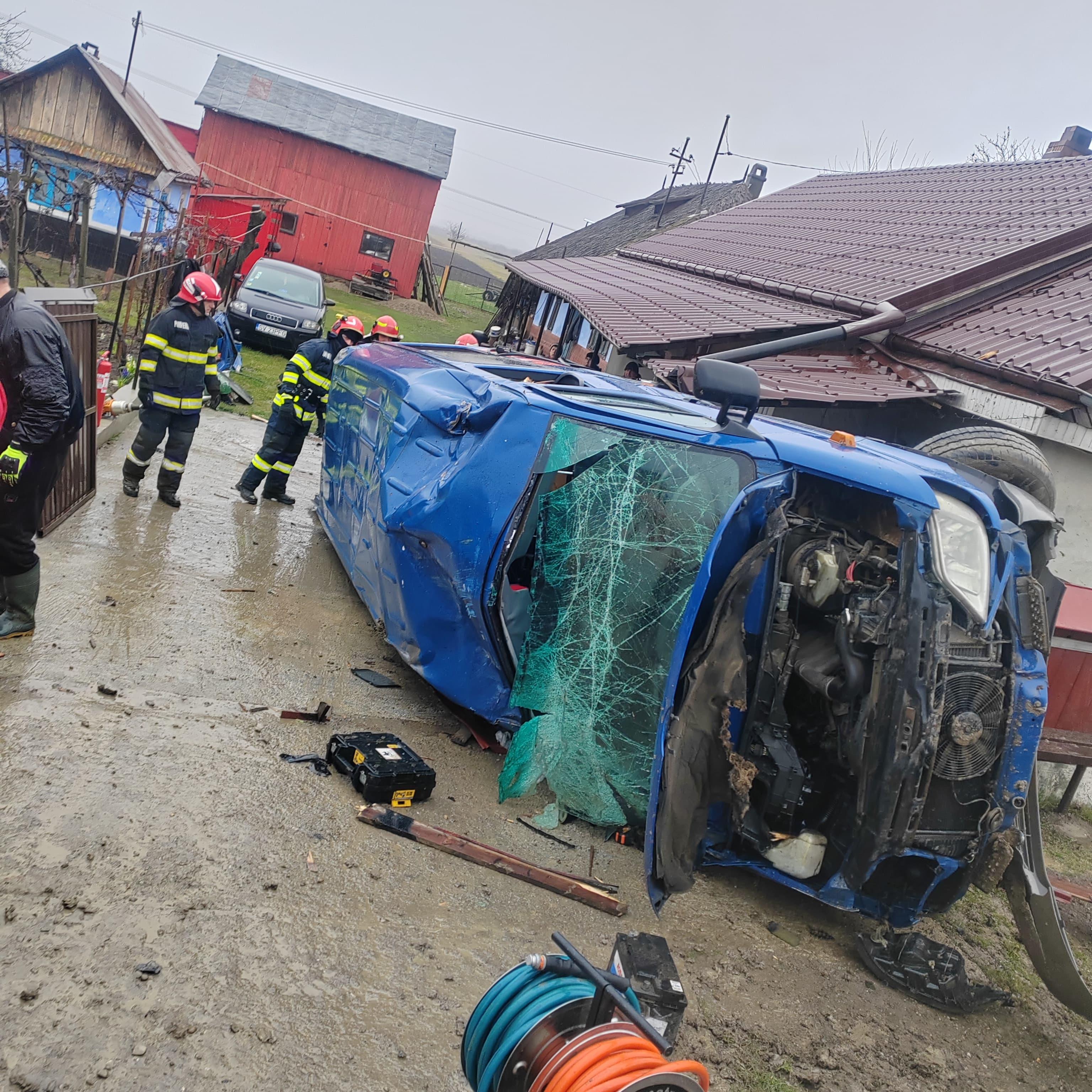 Accident grav într-un sat din Suceava. O autoutilitară cu şase persoane s-a răsturnat într-o curte. Trei oameni, blocaţi între fiarele maşinii