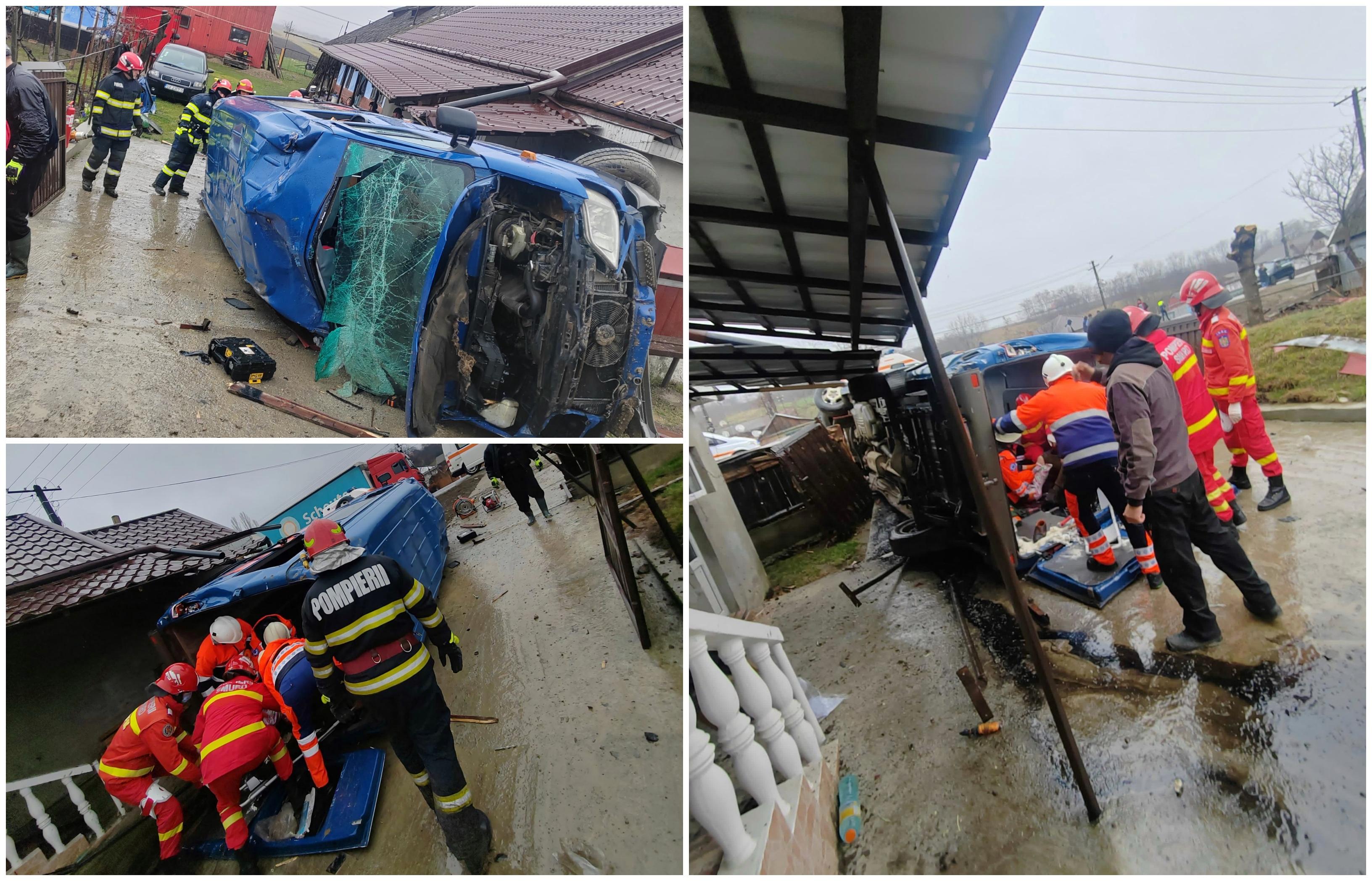 Accident grav într-un sat din Suceava. O autoutilitară cu şase persoane s-a răsturnat într-o curte. Trei oameni, blocaţi între fiarele maşinii