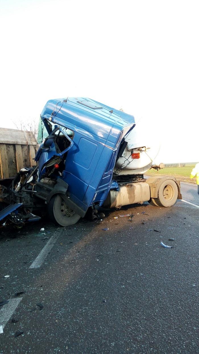 Accident grav la Constanţa. Şoferul unei cisterne a rămas prins între fiare, după ce s-a izbit de o basculantă (Foto)