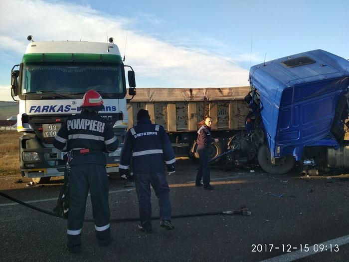 Accident grav la Constanţa. Şoferul unei cisterne a rămas prins între fiare, după ce s-a izbit de o basculantă (Foto)