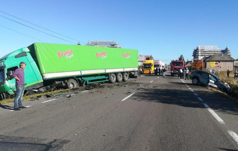 Accident cu 3 victime pe DN1, la Huedin! Impact frontal între un TIR și un autoturism, traficul e blocat (Foto)