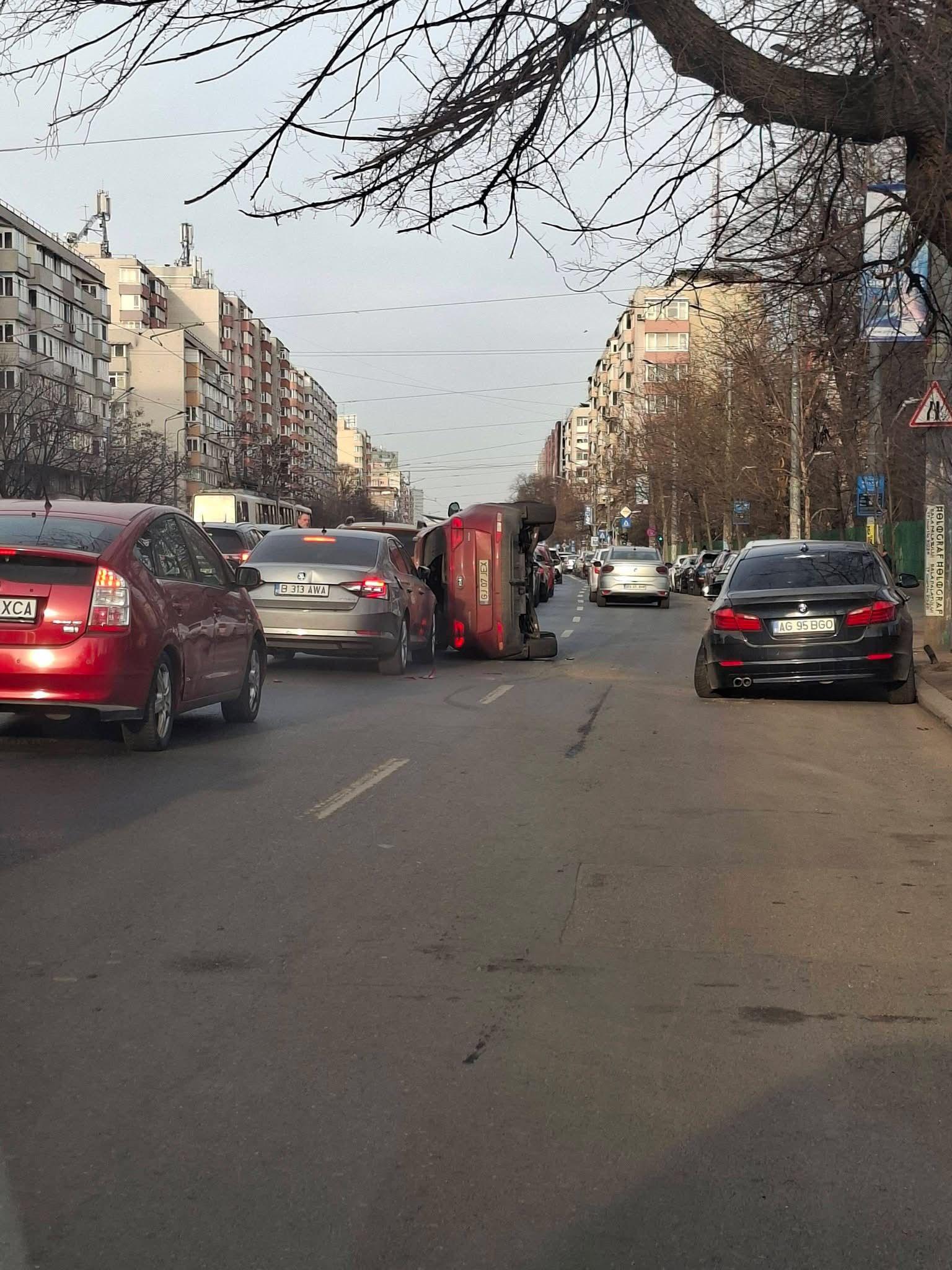 Accident grav lângă Spitalul Colentina. Șase mașini au fost implicate, una s-a răsturnat