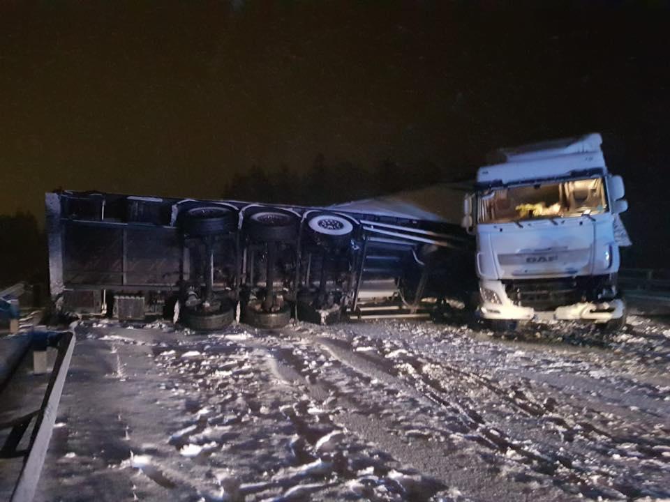 Accident grav cu trei TIR-uri, unul românesc, în Austria. Zăpada pe şosea avea 25 de centimetri