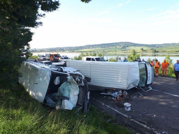 Accident groaznic la Fălticeni. Sunt şapte victime, după ce două microbuze de călători s-au răsturnat pe şosea, lovindu-se de un TIR şi un autoturism