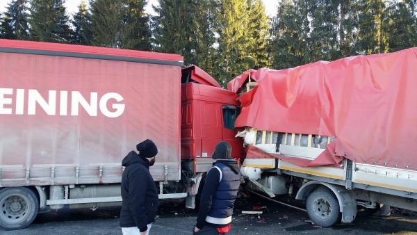 Accident groaznic în Pasul Tihuţa. Două TIR-uri s-au ciocnit, ambii șoferi încarcerați, a intervenit elicopterul SMURD
