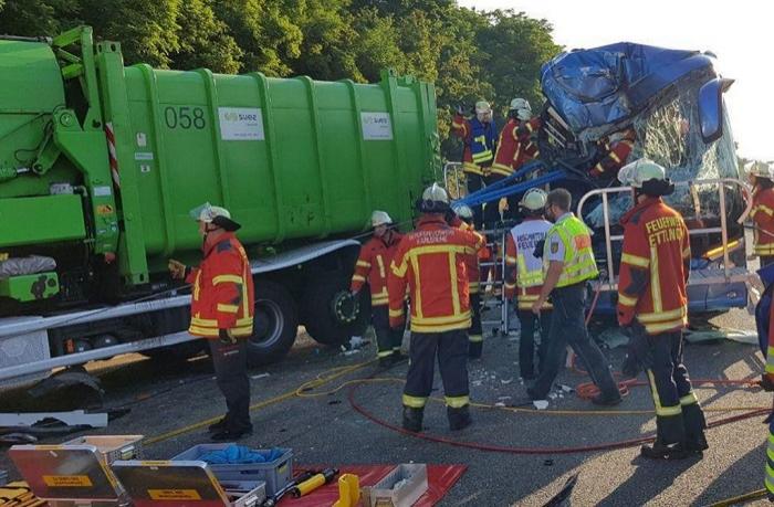 Accident groaznic în Germania, cu 31 de victime. Un autocar a lovit un camion de gunoi, lângă Karlsruhe