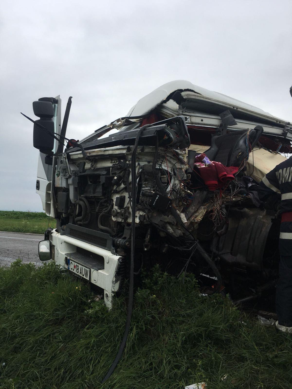 Accident groaznic în Neamţ, după ce un camion încărcat cu ciment a intrat pe contrasens şi a spulberat 2 TIR-uri