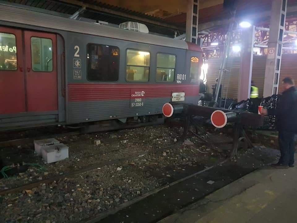 Accident în Gara de Nord din București! Un tren de călători a depășit parapetul de protecție și a intrat pe peron. Un vagon a deraiat