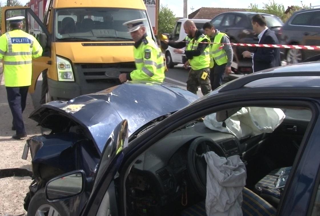 ACCIDENT INEXPLICABIL! Un autoturism a intrat frontal într-un microbuz şcolar oprit într-o staţie. Şase copii sunt victime ale impactului