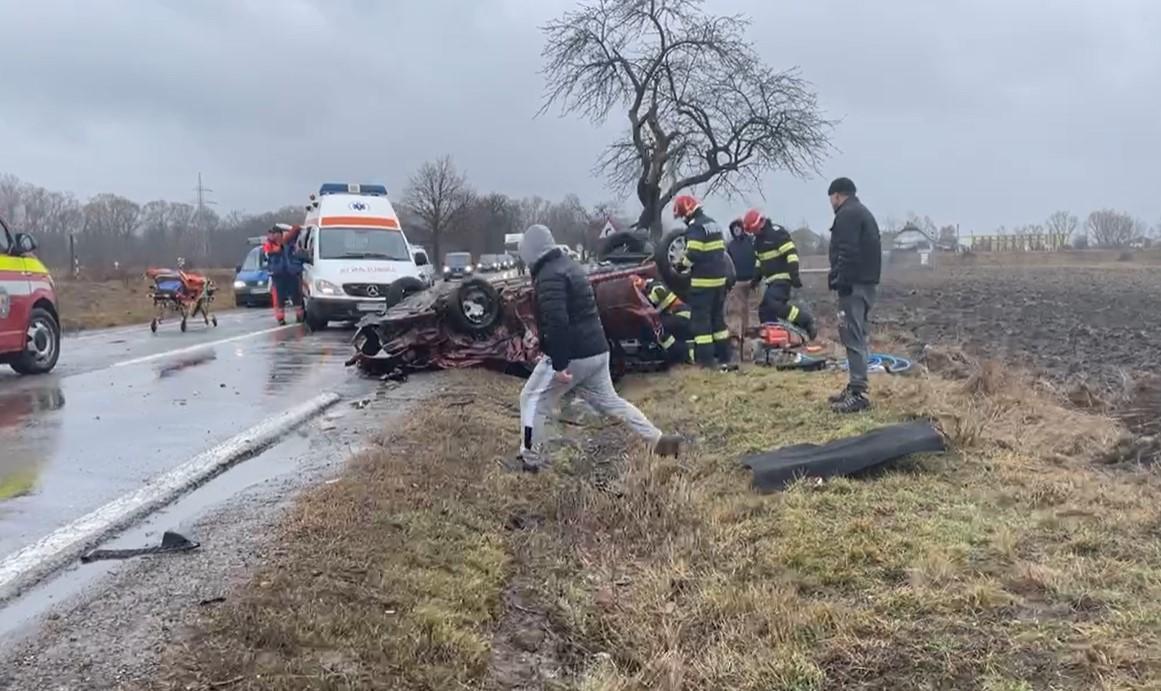 Accident înfiorător la ieşirea din Rădăuţi, în Suceava. Oameni blocaţi între fiare după un impact dezastruos