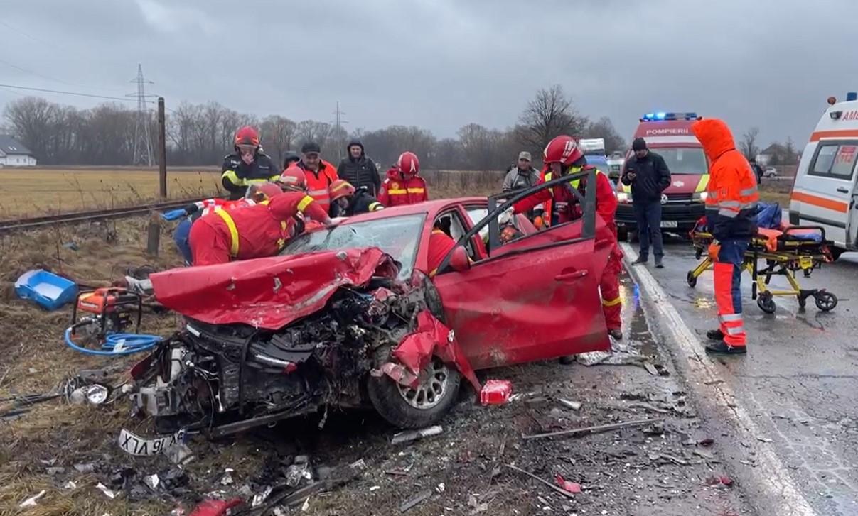 Accident înfiorător la ieşirea din Rădăuţi, în Suceava. Oameni blocaţi între fiare după un impact dezastruos