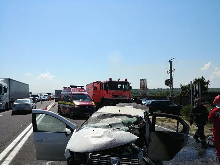 Flăcări pe şosea la Işalniţa, în Dolj, unde un motociclist a murit după o ciocnire violentă cu un autoturism