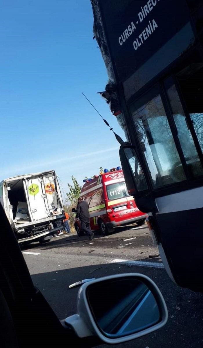 Accident teribil la Lunca Corbului, în Argeş. Impact devastator între 4 maşini, dintre care un autocar şi două TIR-uri