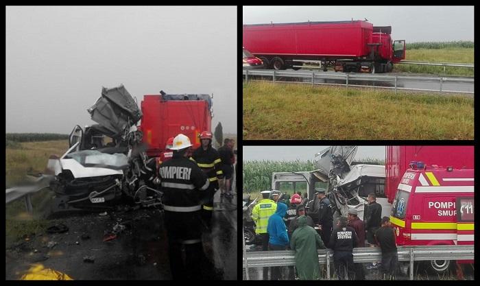 Doi morţi şi doi răniţi grav, după ce un microbuz de pasageri s-a izbit de un TIR, pe o şosea din Brăila. Imagini teribile