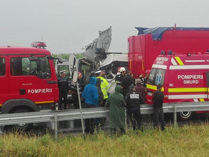 Doi morţi şi doi răniţi grav, după ce un microbuz de pasageri s-a izbit de un TIR, pe o şosea din Brăila. Imagini teribile