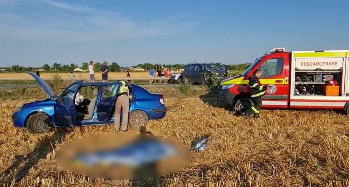 Accident mortal în Constnţa, la ieşirea din Mihai Viteazu. Două maşini s-aiu făcut praf, una a fost aruncată pe câmp
