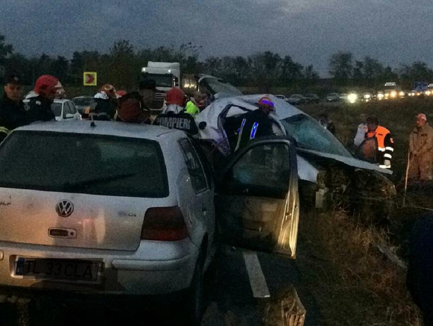 Accident cumplit la Sibioara, în Constanţa. Doi morţi, maşinile s-au ciocnit frontal din cauza carosabilului umed