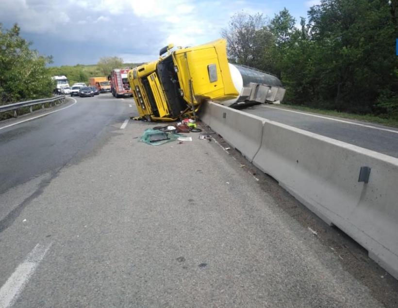 Accident în pădurea Saru. Cisternă plină cu substanţe periculoase, răsturnată pe şosea