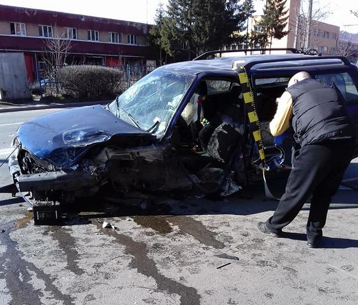 Impact devastator la Petroșani! Șapte oameni, printre care și un copil de cinci ani, au ajuns la spital după ce două mașini s-au ciocnit violent (Video)