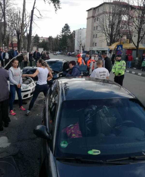 Accident groaznic în Râmnicu Vâlcea. Trei maşini s-au ciocnit într-o intersecţie. Sunt 5 victime, printre care şi un copil