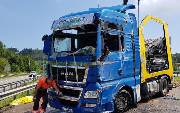 Un şofer român a rămas cu braţul prins sub cabină, după ce s-a răsturnat cu TIR-ul pe o autostradă din Spania (video)