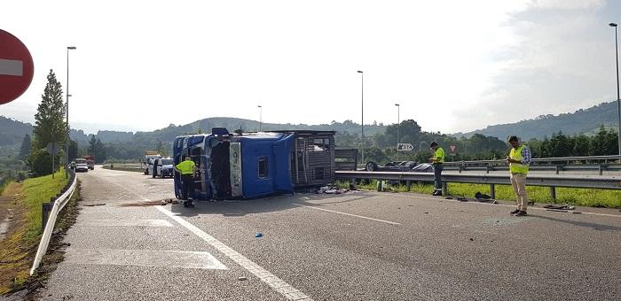 Un şofer român a rămas cu braţul prins sub cabină, după ce s-a răsturnat cu TIR-ul pe o autostradă din Spania (video)