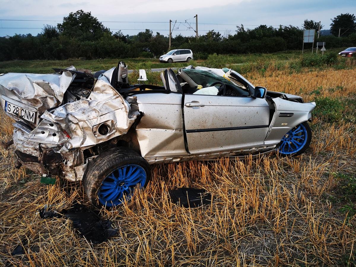 Tânăr mort la Iaşi, după ce a zburat cu BMW-ul de pe şosea. În maşină se afla şi o fată de 15 ani (Video)