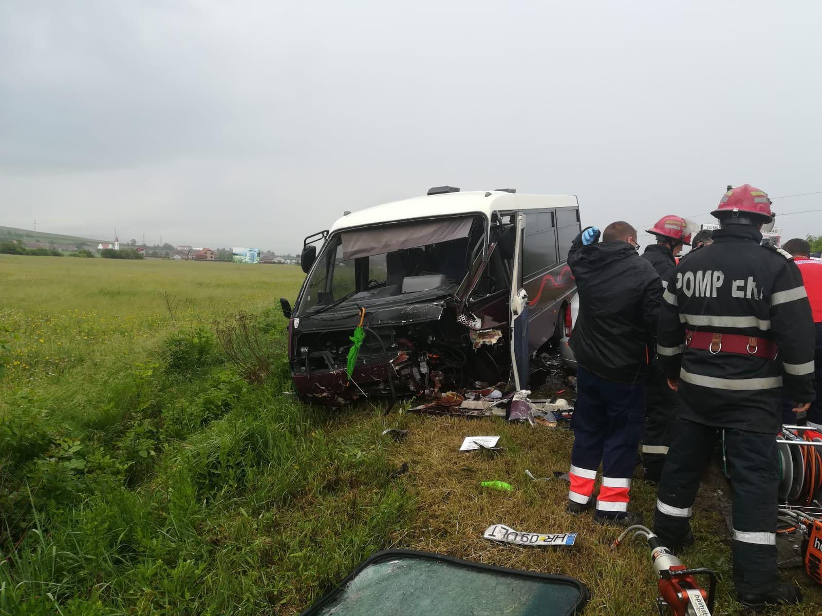 Primele imagini cu accidentul teribil de la Sâncrăieni. Impact fatal între o maşină şi un microbuz cu 20 de călători (Video)