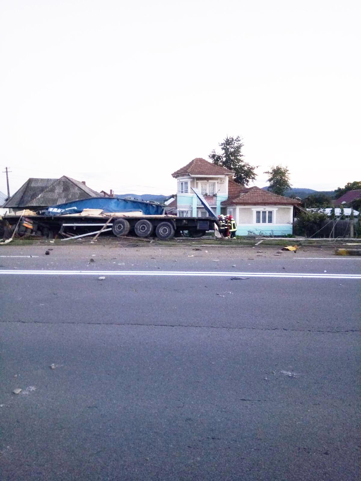 Accident halucinant la Săvineşti. Un TIR a ras o casă de pe marginea şoselei. Victime multiple, scurgeri de gaz, se intervine de urgenţă