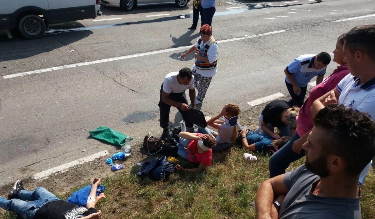 Accident teribil la Soci, în Iaşi. Un microbuz s-a izbit de o dubă, sunt peste zece victime