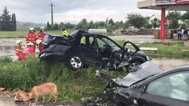 Carambol teribil în Suceava, la Pătrăuţi. Sunt mai multe victime, după ce un Logan a intrat pe contrasens şi a făcut praf alte două maşini (Video dramatic)