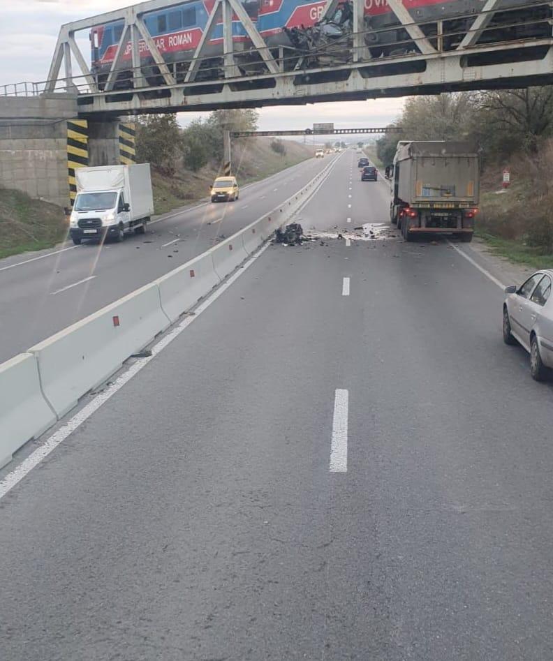 Accident teribil, în Constanţa: o maşină a fost "agăţată" şi târâtă de tren zeci de metri. Vehiculul, rămas blocat între tren şi pasarela unui pod: ce a păţit şoferul