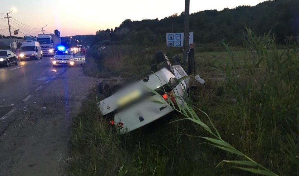 Accident TERIBIL la Dej! Un taximetrist cu client în mașină s-a RĂSTURNAT în șanț. Autoturismul, lovit violent de un altul