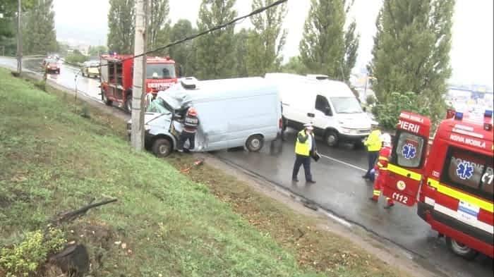 Accident TERIBIL la Deva, unde şoferul unei dube a fost STRIVIT în cabina maşinii. A suferit fractură de bază de craniu şi e în COMĂ