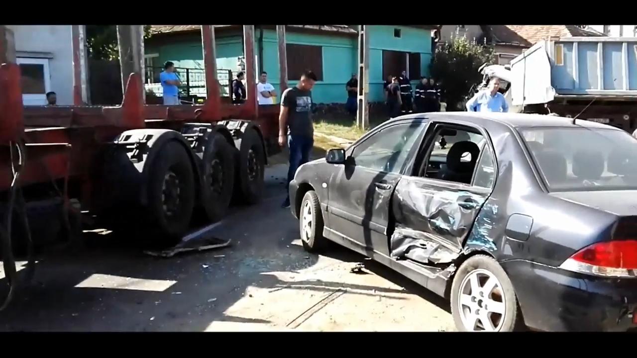 ACCIDENT TERIBIL lângă Târnăveni. Două TIR-uri s-au spulberat reciproc, prinzând la mijloc şi un autoturism (VIDEO)