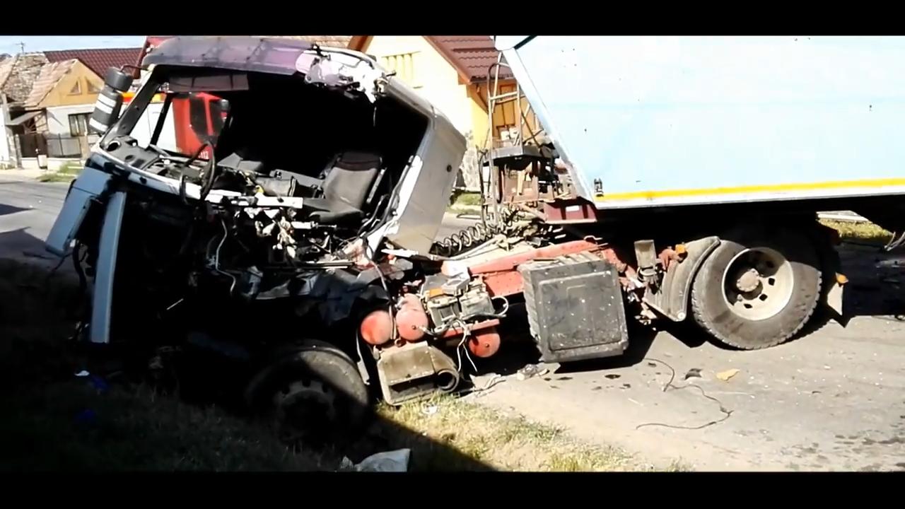 ACCIDENT TERIBIL lângă Târnăveni. Două TIR-uri s-au spulberat reciproc, prinzând la mijloc şi un autoturism (VIDEO)