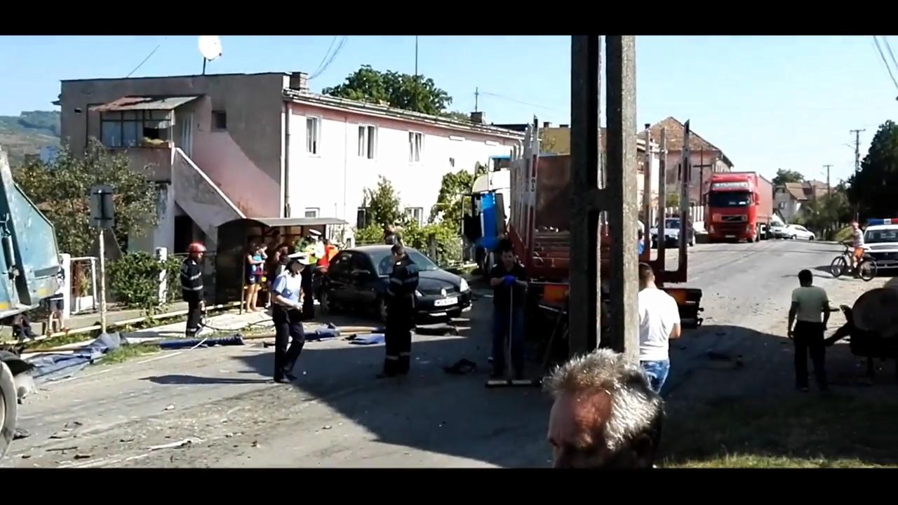 ACCIDENT TERIBIL lângă Târnăveni. Două TIR-uri s-au spulberat reciproc, prinzând la mijloc şi un autoturism (VIDEO)