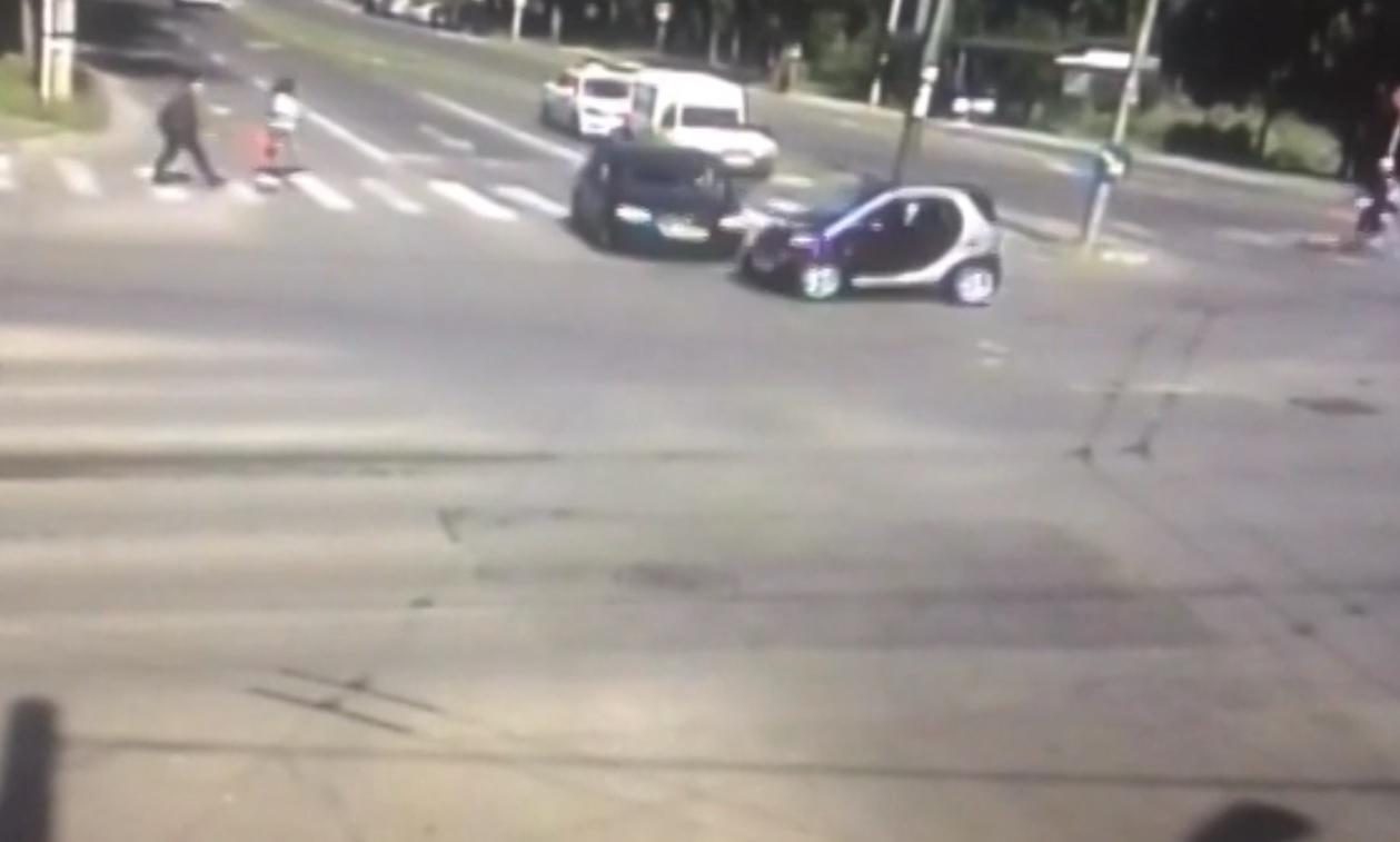 ACCIDENT VIOLENT în Timişoara, provocat de o şoferiţă gravidă: Un SMART a intrat într-un autobuz, după ce femeia a trecut pe roşu! Vezi MOMENTUL IMPACTULUI