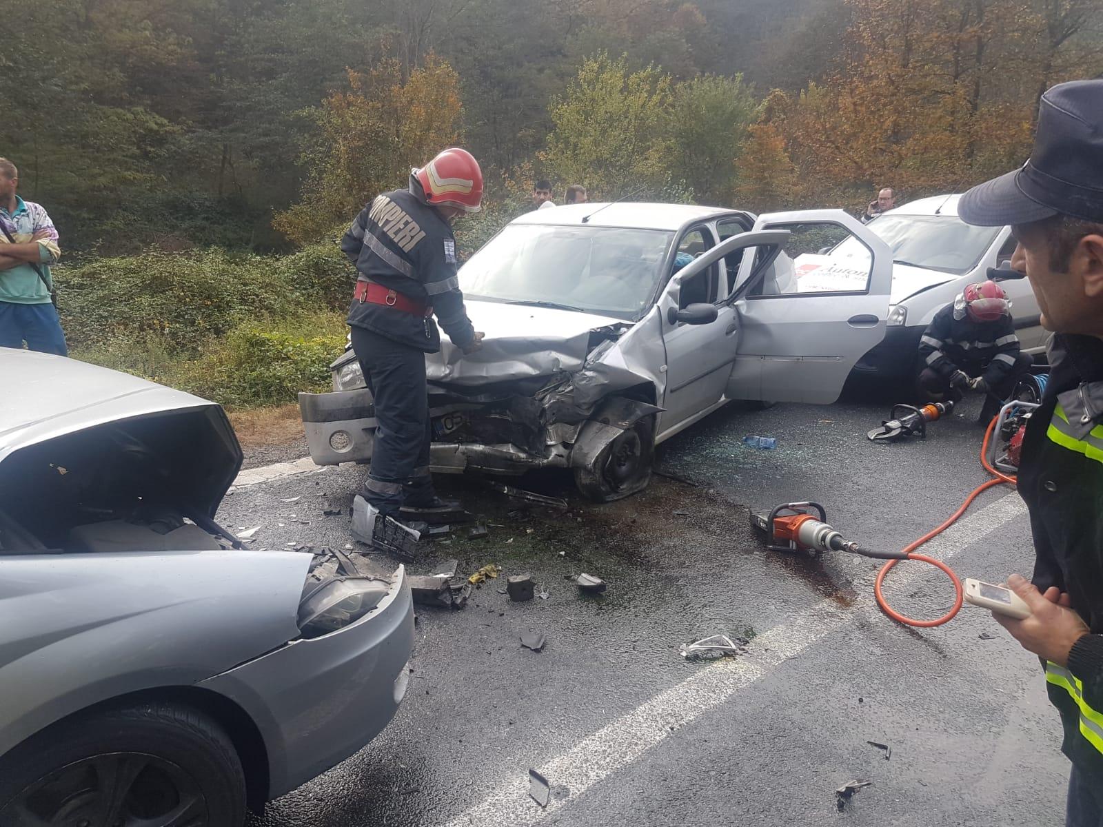 Accident cu trei mașini între Reșița și Bocșa! Sunt 5 victime, dintre care una încarcerată
