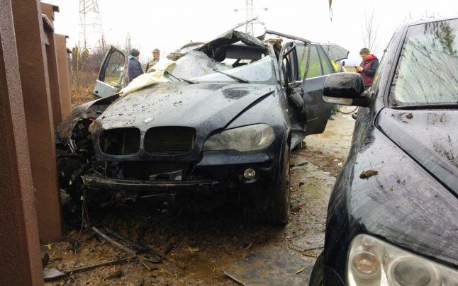 Un jeep condus de o femeie s-a dat de mai multe ori peste cap, zburând peste un şanţ şi oprindu-se într-o maşină parcată în faţa casei