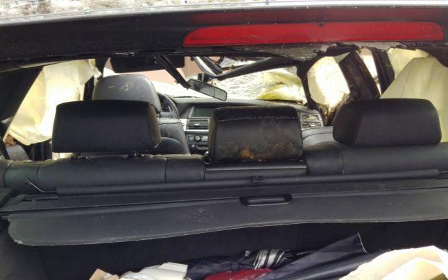 Accident spectaculos la Ulmi. Un jeep condus de o femeie s-a dat de mai multe ori peste cap, zburând peste un şanţ şi oprindu-se într-o maşină parcată în faţa casei (video)