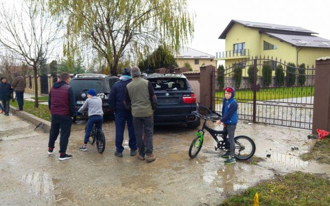 Accident spectaculos la Ulmi. Un jeep condus de o femeie s-a dat de mai multe ori peste cap, zburând peste un şanţ şi oprindu-se într-o maşină parcată în faţa casei (video)