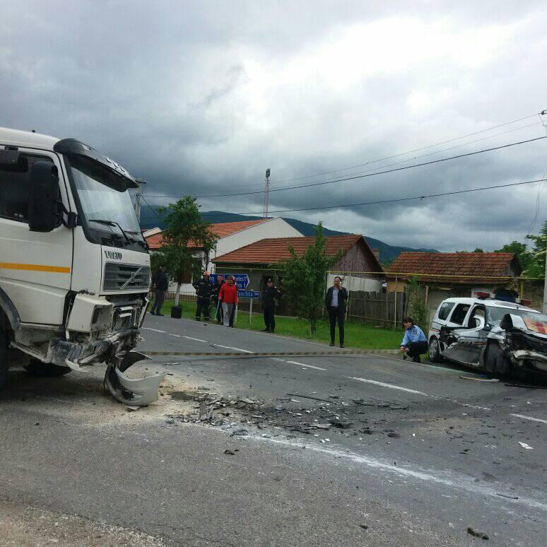 Maşină de poliţie în misiune lovită frontal de un camion, la Voislova, în Caraş Severin. Un poliţist încarcerat