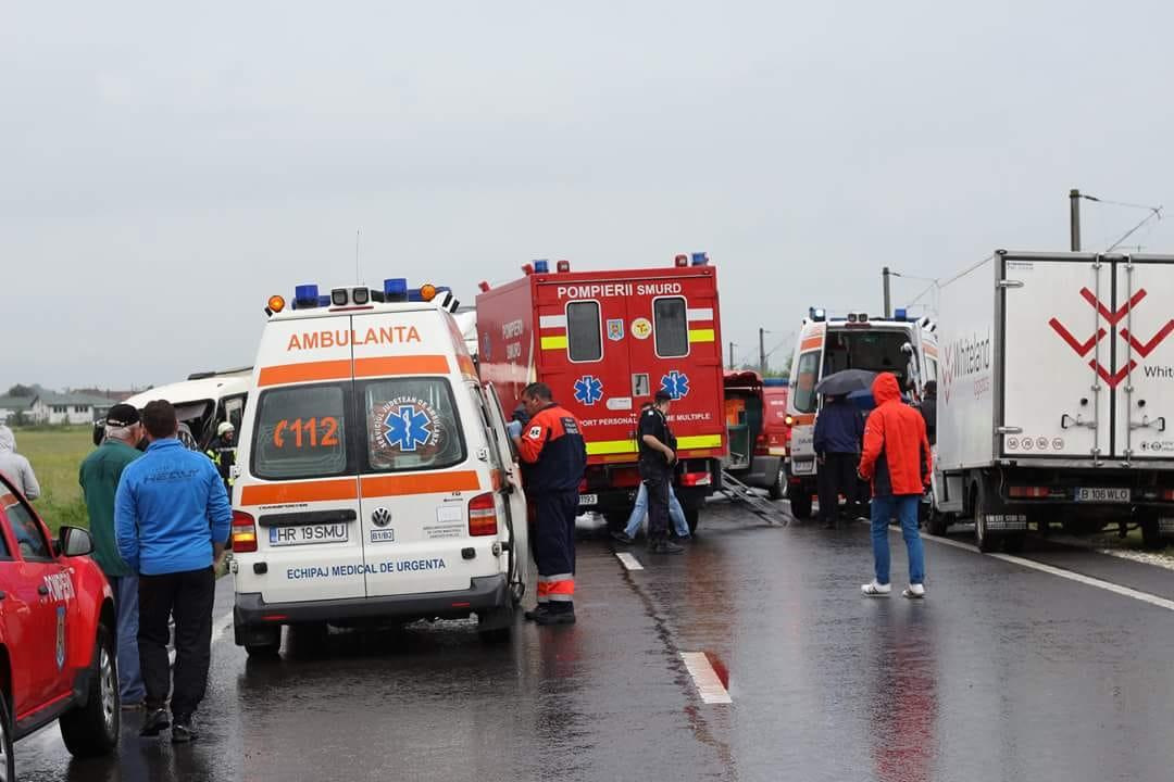 Accidentul de la Sâncrăieni, bilanţ înfiorător. 15 victime: 2 morţi şi 13 răniţi, după ce un autoturism a spulberat un microbuz cu călători