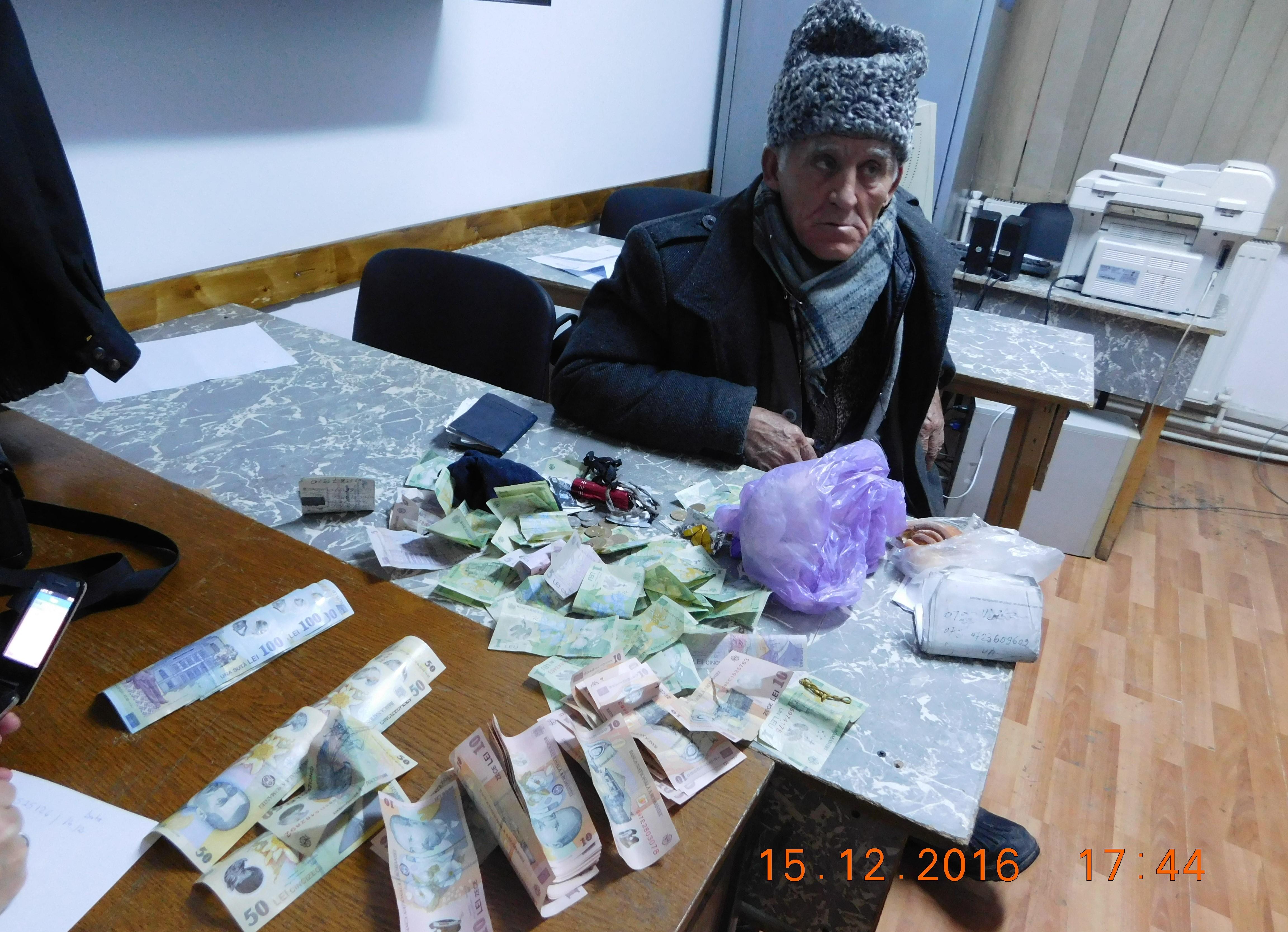 Acest bătrânel sărman cerşeşte să supravieţuiască. Are cont în bancă, mii de lei în buzunar şi stă la hotel. Stai, ce? | Sursa foto: Poliţia locală Suceava