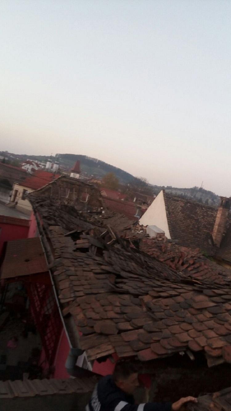 Acoperişul unei case, prăbuşit la Mediaş. Mai multe persoane se aflau în locuinţă